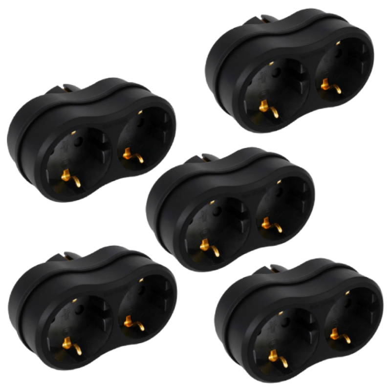 5-PACK Horizontale Stopcontact Splitter - Wave - Horizontale Stopcontacten - Randaarde - Zwart