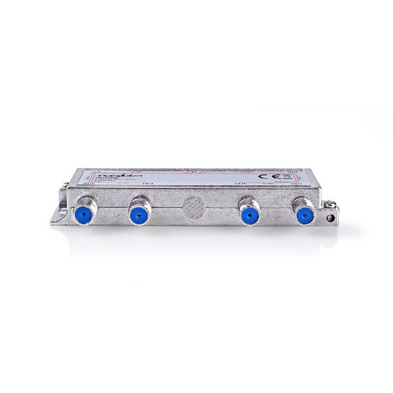 Zesvoudig verdeelelement (Splitter) met F-aansluiting en DC-power pass voor het eenvoudig (symmetrisch) verdelen van satelliet signalen.