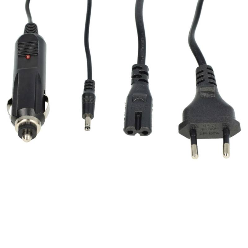 Lichtgewicht en compact accu oplaadstation voor je digitale camerabatterij. Sluit de lader aan op het stopcontact of gebruik de 12V sigarettenaansteker-plug om op te laden in de auto.