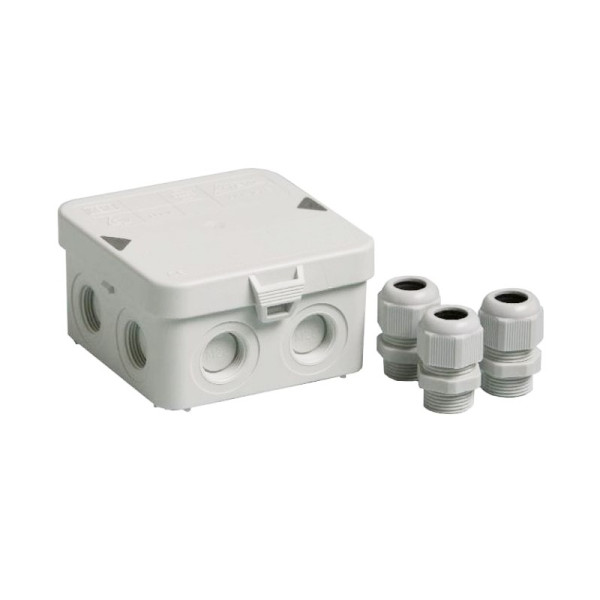 Attema Kabeldoos AK1-IP65 + 3 wartels M20. Met deze opbouwdoos voor wand en plafond verbind je gemakkelijk kabels buiten of binnen. Er worden 3 wartels M20 meegeleverd