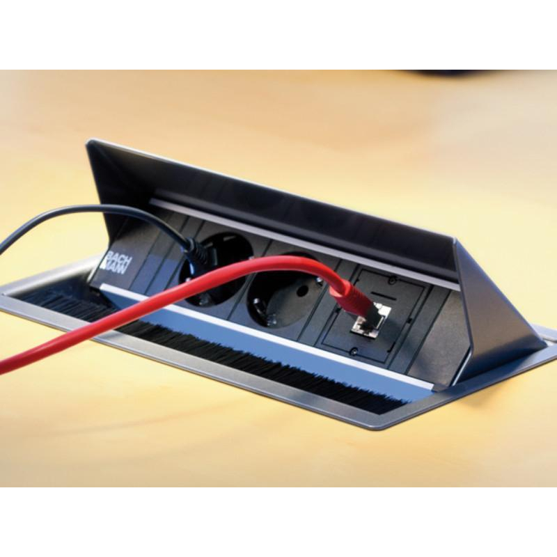 De Bachmann CONI Lang is een veelzijdige en stijlvolle inbouwoplossing voor stroom- en datatoegang in vergadertafels, werkplekken en conferentieruimtes. Met ruimte voor 2 stroomaansluitingen en 4 uitbreidingsmodules biedt deze unit maximale flexibiliteit in één strak geïntegreerd systeem.