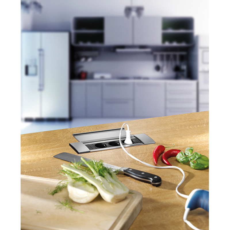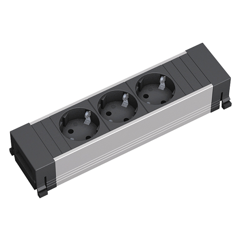 De Bachmann Power Frame is de no-nonsense oplossing voor wie een strakke en modulaire stroomvoorziening zoekt, direct in het werkblad, vergadertafel of balie. Deze variant is uitgerust met 3 Schuko-stopcontacten (met randaarde, 35 graden gedraaid voor betere toegankelijkheid) en een 0,1 meter voedingskabel met GST18-3® male plug.