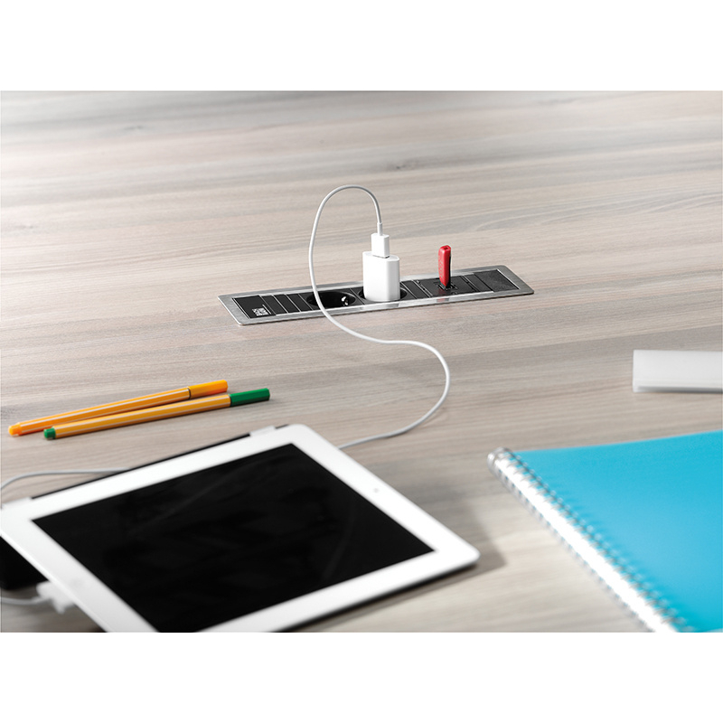 Gemaakt voor integratie in de korte versies van de Bachmann Power Frame inbouwframes. De stevige aluminium behuizing zorgt voor een nette, duurzame afwerking. Alles binnen handbereik, zonder zichtbare kabeltroep.