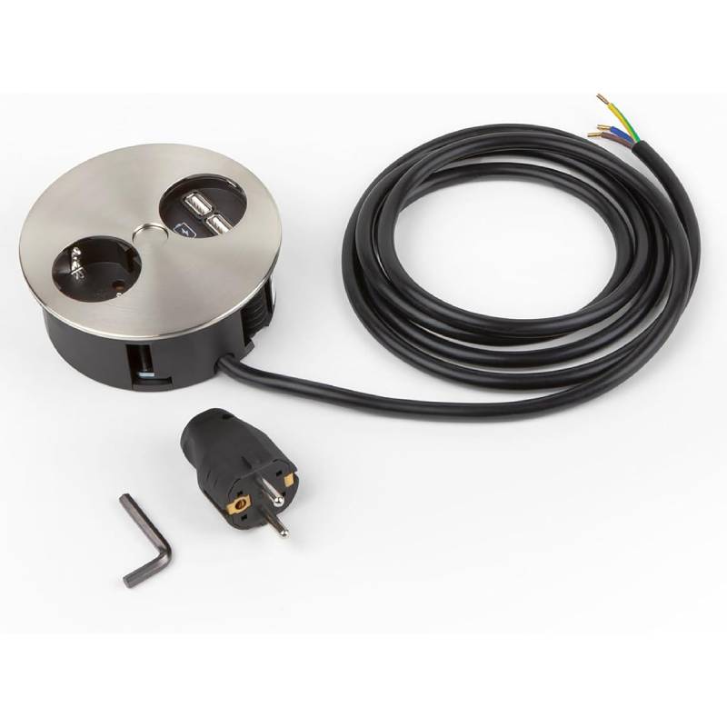 Bachmann Twist - 1x Schuko - 2x USB-A oplaadpoort - 105mm - 2 meter - RVS look