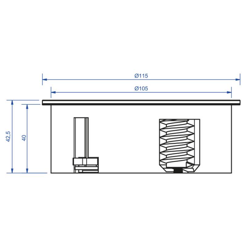 - Inbouwdiameter 105 mm, inbouwdiepte 40 mm