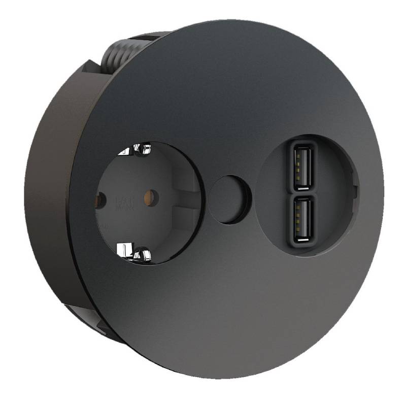 De Bachmann Twist in het zwart is een praktische en elegante oplossing voor stroom- en USB-oplaadpunten in diverse ruimtes, zoals kantoren, lounges en keukens. Dankzij het compacte ontwerp en de geringe inbouwdiepte integreer je deze unit eenvoudig en ruimtebesparend in werkbladen en aanrechten.