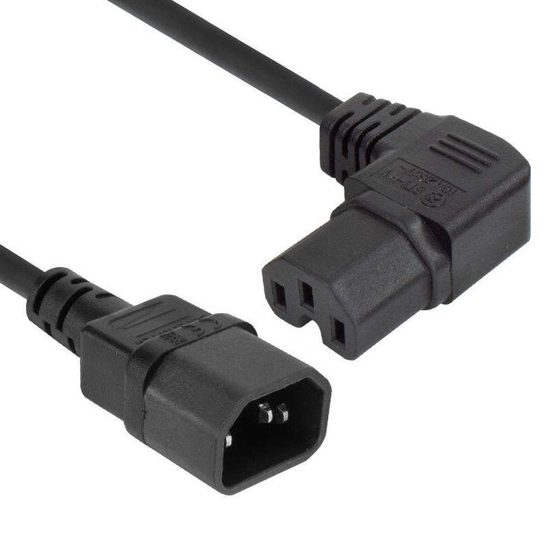 C14 - C15 Haaks Rechts Verlengkabel - 3 x 1mm2 - 2 meter - Zwart