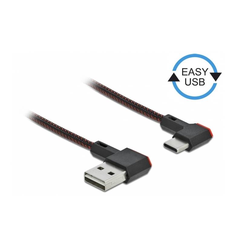 Delock USB-A naar USB-C Kabel - USB 2.0 - USB-A Haaks naar links en rechts - 1 meter - Zwart