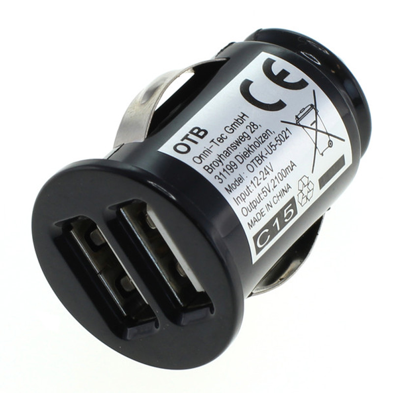 Dubbele USB Autolader - 5V - 2,1A - 10W - 2x USB-A - Zwart