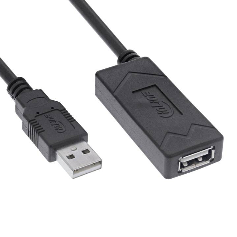 InLine Actieve USB Verlengkabel - USB 2.0 - USB-C (v) voor extra voeding - 15 meter - Zwart