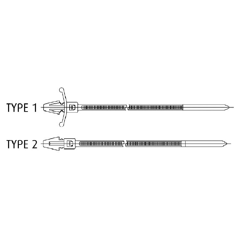 Deze kabelbinders met spreidanker zijn geschikt voor het bundelen en geleiden van kabels in een voorgeboord gat met een diameter van 4,8mm. De maximale paneeldikte is 2,4mm en de maximale bundeldiameter is 25mm. Per binder kun je rekenen op een maximale trekkracht van ±8kg.