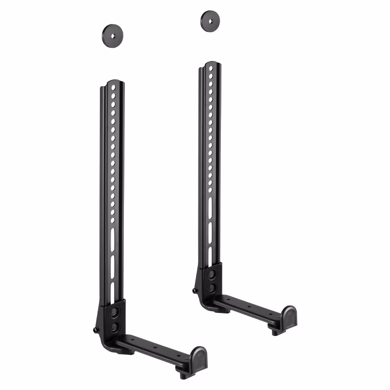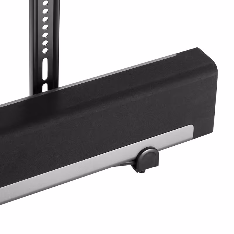 Het is met deze ophangbeugel mogelijk om de soundbar in hoogte te verstellen, zodat deze perfect aansluit bij de TV. De soundbarbeugel wordt namelijk aan de ophangpunten van de TV bevestigd, waardoor je deze enigszins flexibel kunt bevestigen. Dit zorgt ervoor dat de TV perfect samenwerkt met de speaker. Doordat de beugel aan de TV bevestigd wordt, draait de luidspreker met de televisie mee waardoor je niet alleen een optimale kijk- maar ook luisterervaring creëert. Deze sluit zo perfect aan op de TV, dit zorgt voor één mooi geheel. Het geluid en beeld altijd in een lijn voor de beste beleving.