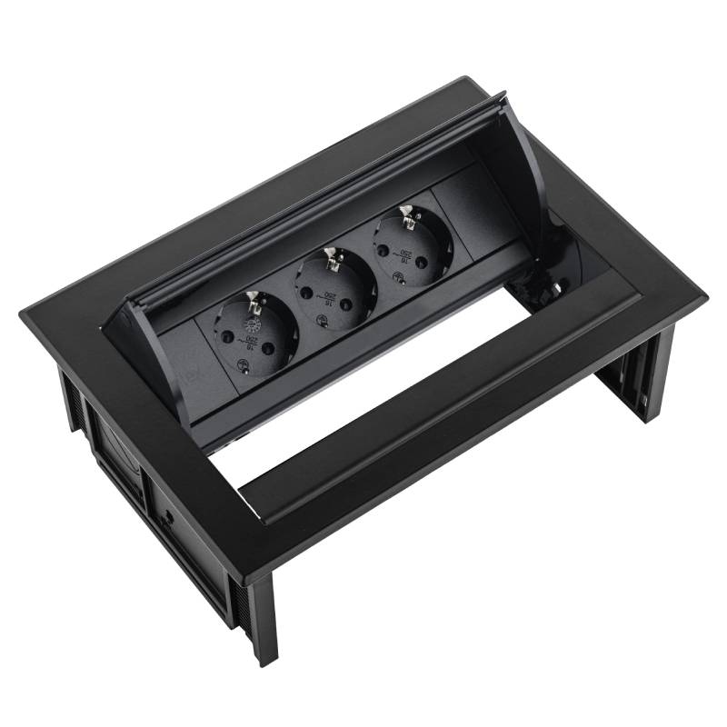 De Desk In inbouwunit is eenvoudig in je werkblad te monteren en zorgt voor een strakke en opgeruimde uitstraling. De afdekflap opent en sluit soepel en geruisloos met een simpele aanraking. De unit is voorzien van een vaste aansluitkabel van 1 meter met een 3-polige connector.