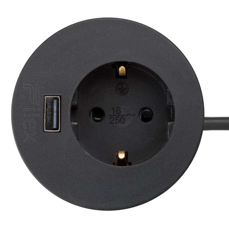 Power Spot - 1x Schuko - 1x USB-A oplaadpoort - 60mm - 1,7 meter eGST (m) - Zwart