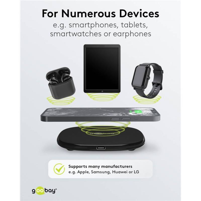 Deze draadloze oplader is de ideale oplossing voor wie snel, veilig en zonder kabels wil opladen. Dankzij ondersteuning voor het Qi-protocol is hij compatibel met vrijwel alle moderne smartphones, tablets en draadloze oordopjes, waaronder de volledige reeks iPhones van de iPhone 8 tot en met de iPhone 14 Pro Max, diverse iPad Pro- en Air-modellen, én Apple AirPods met draadloze oplaadcase. Ook toestellen van merken als Samsung, Huawei en LG worden probleemloos opgeladen.