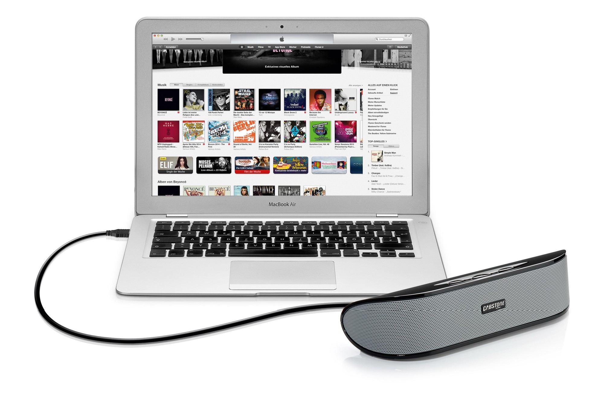 Deze zwarte draagbare speaker van het merk Cabstone levert een helder geluid met een volle bas. De speaker maakt gebruik van een 2-wegs geluidsysteem met twee 3 Watt speakers en een passieve subwoofer, dit zorgt voor een helder geluid met een diepe bass. De speaker werkt enkel op AAA batterijen en heeft geen ingebouwde accu.