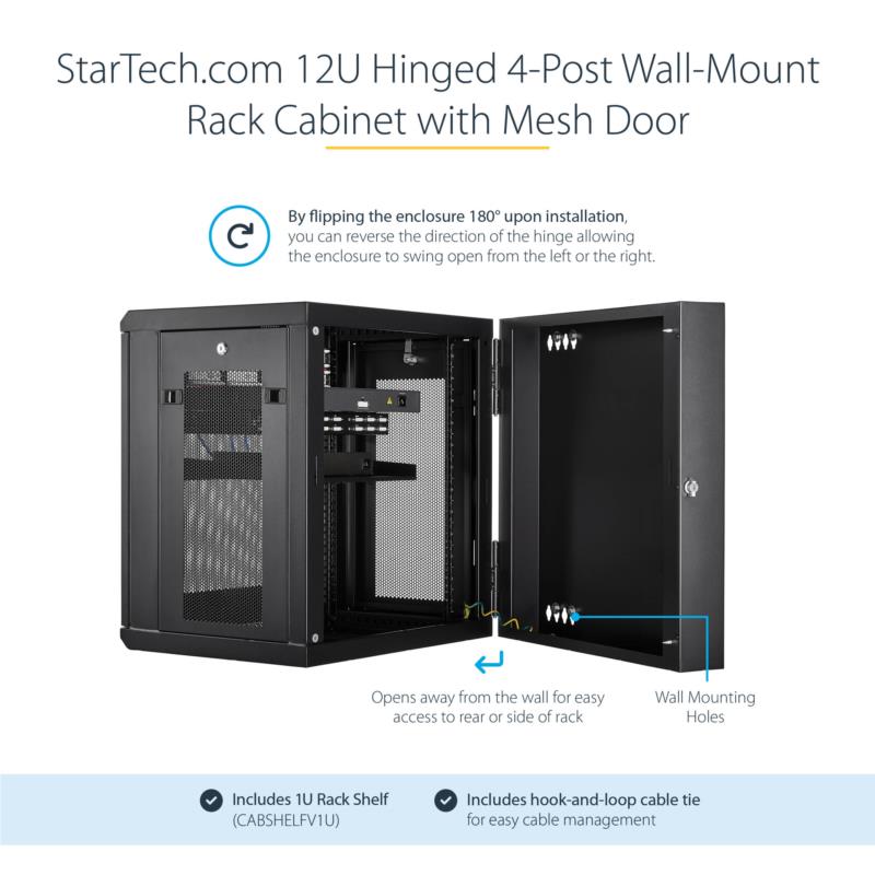 StarTech 12U Serverkast rack - 16 inch diep - wandmonteerbaar scharnierend