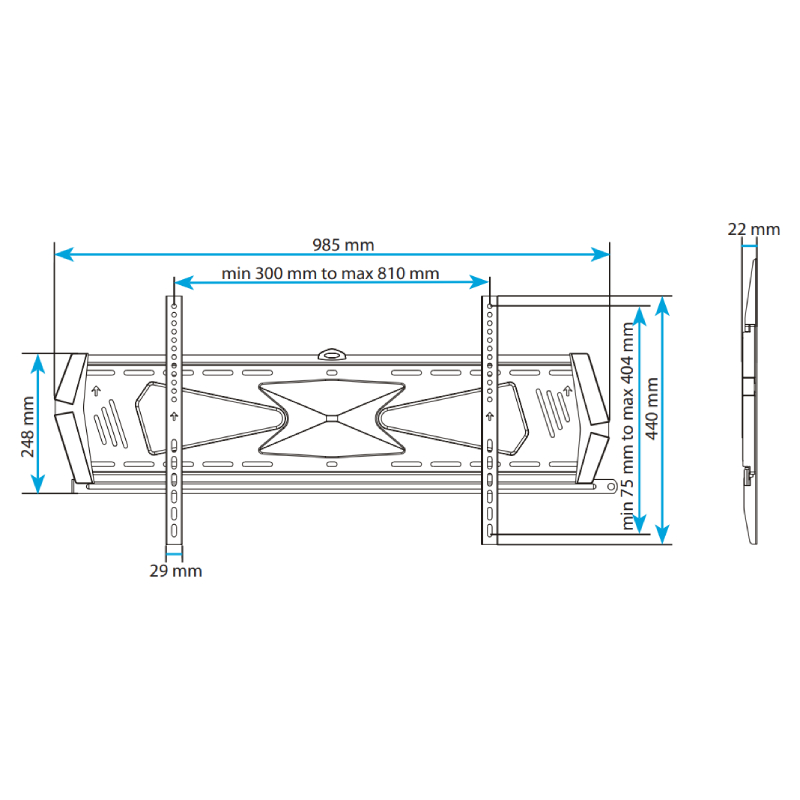 De muurbeugel wordt vast bevestigd aan de muur en hangt daarom slechts op 22 millimeter van de muur. Dit maakt het mogelijk jouw TV of scherm extreem dichtbij de wand te hangen. De TV-beugel wordt geleverd met een waterpas voor een loodrechte plaatsing en is uitgerust met een ingebouwd kabelbeheersysteem om kabels netjes en veilig geordend te houden.