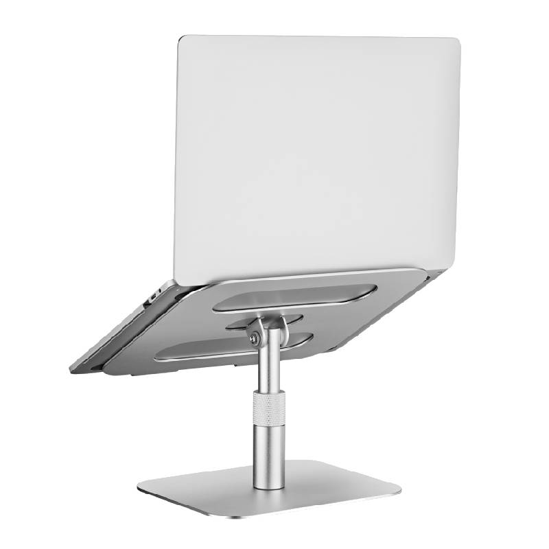 De standaard is volledig kantelbaar en draaibaar met een 360° rotatie, waardoor je de kijkhoek en oriëntatie eenvoudig kunt aanpassen aan je voorkeur, of je nu werkt, video's kijkt, of presentaties houdt. Daarnaast biedt de standaard een verstelbare hoogte van 112 tot 154 mm, zodat je altijd op een ergonomisch verantwoorde manier kunt werken. Dankzij de stevige constructie kan hij apparaten tot 5 kg dragen.