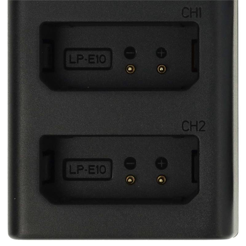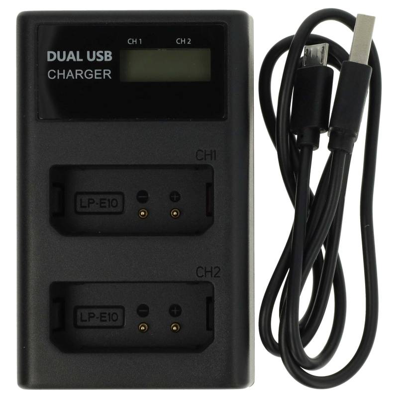 Tweevoudige Accu oplader voor Canon LP-E10 Accu's - Met display - Zwart