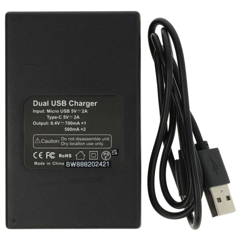 Lichtgewicht en compact accu oplaadstation voor je digitale camerabatterij. Sluit gewoon je micro-USB of USB-C oplader (bijvoorbeeld van je smartphone) aan en het opladen begint meteen. Er wordt enkel een USB-A naar Micro USB-B kabel meegeleverd.