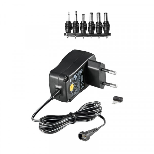 Zeer compacte en super efficiënte 600 mA plug-in adapter met 3-12 V output en LED indicator.
