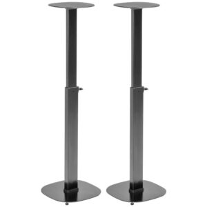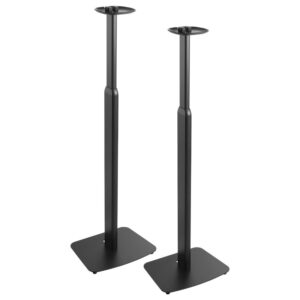 Met deze in hoogte en breedte verstelbare speaker vloerstandaard set positioneer je je speakers altijd op de perfecte luisterhoogte. Dankzij de traploos verstelbare hoogte van 85,8 tot 112,8 cm kunnen de standaards eenvoudig worden aangepast, of je nu op de bank zit of aan je bureau werkt. De verstelbare klembevestiging is geschikt voor speakers met een breedte van 13 tot 28,5 cm en houdt ze stevig op hun plaats zonder gereedschap.