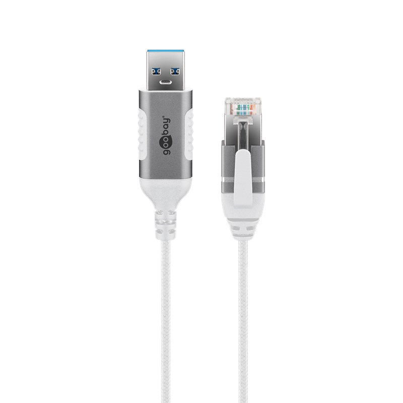 USB-A (m) naar RJ45 (m) Slimline Gigabit Ethernet Kabel - Nylon Sleeve - 3 meter - Wit